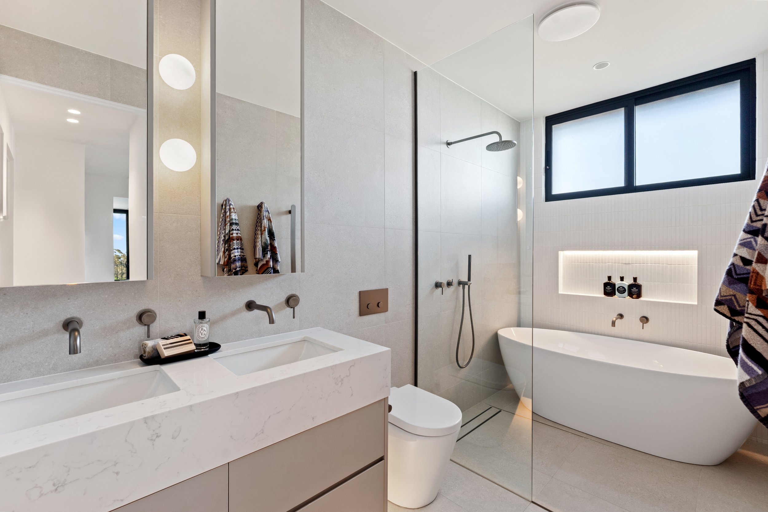 A statement in contemporary luxury, these magnificent three-level residences both offer 300sqm of refined living, impeccably designed to maximise light, space, and comfort. Flawlessly crafted for seamless indoor-outdoor living, they both have four to five-bedrooms and provide privacy and comfort while creating the perfect environment to relax and entertain. Their open-plan living and dining areas flow effortlessly onto covered alfresco terraces, showcasing breath-taking, never-to-be-built-out water views from every angle - including the opulent master suite.
